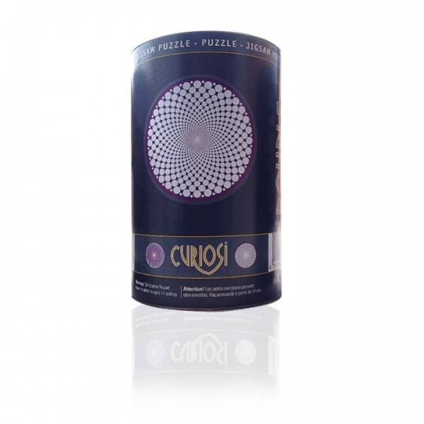 A lovely tricky puzzle. The 2 similar motifs on the front and back, the round packaging with 2 light metal lids make this puzzle a fun and challenging gift.