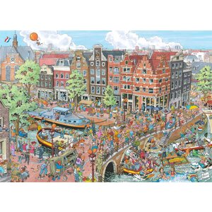Fleroux' funny drawings make puzzling a party! Discover Amsterdam and its many canals in a completely different way!