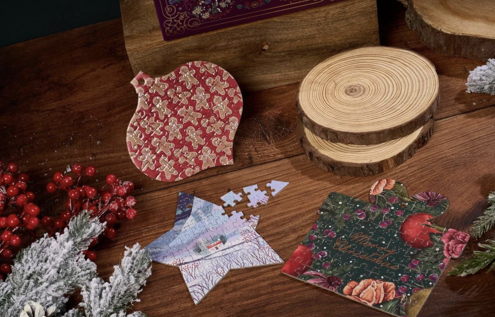 Présenté dans une superbe boîte dorée, ce magnifique calendrier est le cadeau idéal pour tous les amateurs de puzzles. La colle à puzzle et le ruban sont inclus dans la boîte, ce qui signifie qu'une fois le puzzle terminé, vous pourrez créer vos propres décorations de Noël.