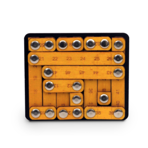 Pouvez-vous positionner les deux règles de pliage de façon à ce qu'elles s'adaptent parfaitement à la grille ? Les règles doivent se croiser en certains points, en haut ou en bas. Emballé dans une caisse en bois.
