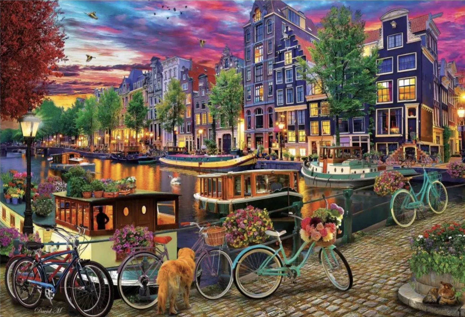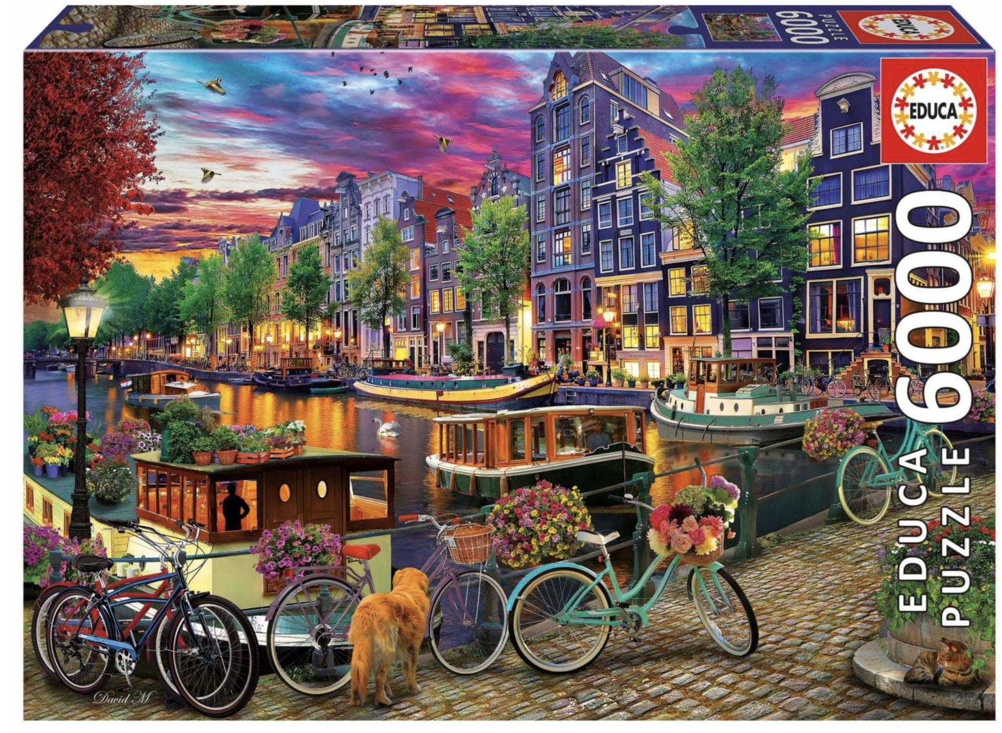 Puzzle de 6000 pièces. Scène nocturne sur les canaux d'Amsterdam.