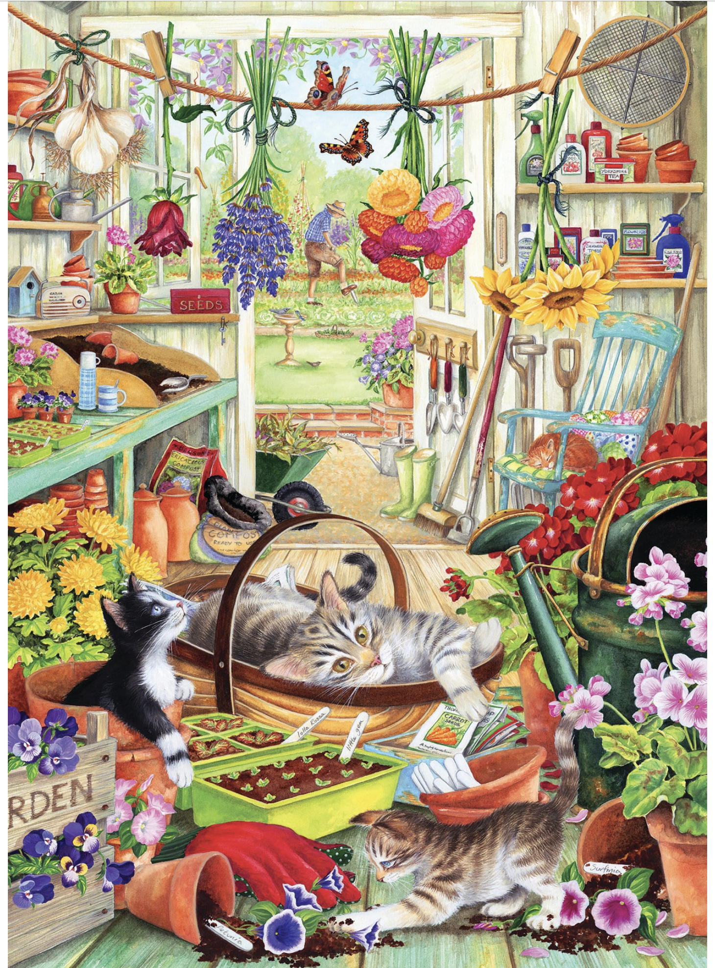 Cobble Hill Potting Shed Cats - puzzel van 500 XL stukjes