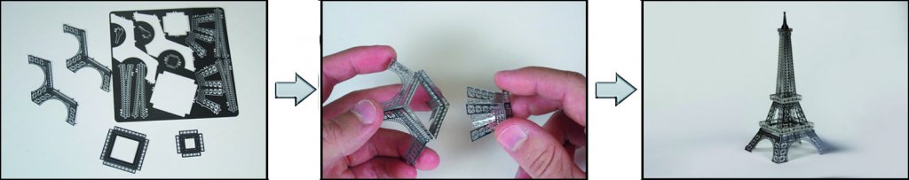 Deze draak bestaat uit 3 dunne metalen vel. Haal eerst alle voorgesneden onderdelen uit de metalen vellen, door te knippen, te plooien of te draaien. Vervolgens kan je beginnen puzzelen. Plooi de onderdelen in de juiste vorm; zet 2 stukjes aan elkaar door lipjes of pinnetjes door een gleufje te schuiven, door te plooien,... Je kan dit model volledig in elkaar zetten zonder lijm! Een fijne knip- en punttang is wel handig om te gebruiken! In de verpakking staan de handige instructies steeds stap voor stap uitgelegd.