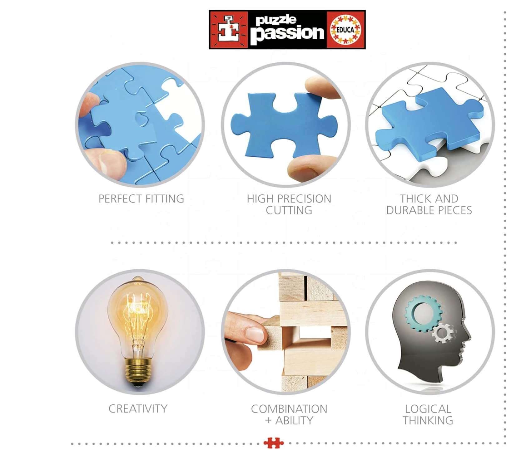 Educa biedt een enorm gamma aan puzzels voor alle leeftijden, en dat in een combinatie van hun prestigieuze eigen merken en de meest populaire licenties. Het is ook een merk dat gespecialiseerd is in grote puzzels. Puzzels van 6.000, 8.000 of zelfs 42.000 (!) stukjes... dat produceren ze met gemak!