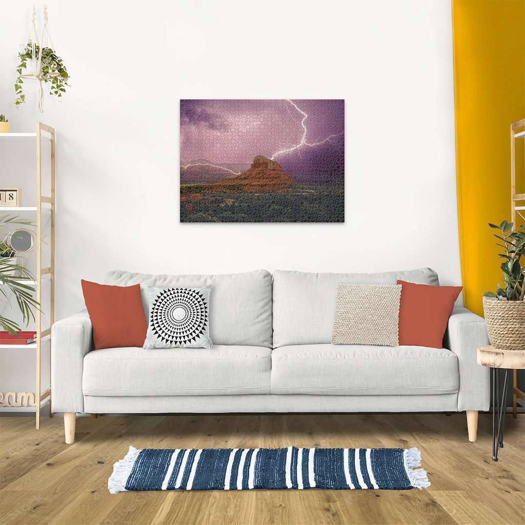 Ervaar de kracht en pracht van onweer en donder die het woestijnlandschap roze kleuren, schitterende puzzel uit de reeks Power of Nature, de perfecte eerste stap naar de wereld van de grote puzzels.